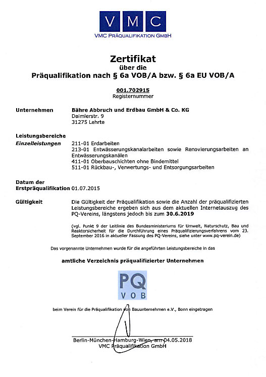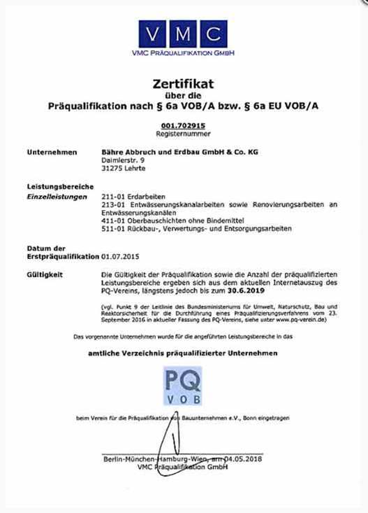 - Präqualifikation nach § 6a VOB/A bzw. § 6a EU VOB/A für 211-01, 213-01, 411-01, 511-01