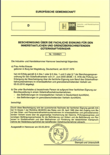 - Fachliche Eignung für den innerstaatlichen und grenzüberschreitenden Güterkraftverkehr