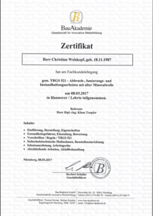 Wir sind in Besitz aller notwendigen Lizenzen und Genehmigungen welche uns die fachlichen Qualifikationen zur Durchführung aller angebotenen Arbeiten verleihen. Folgende Aufstellung gibt Ihnen einen Überblick: